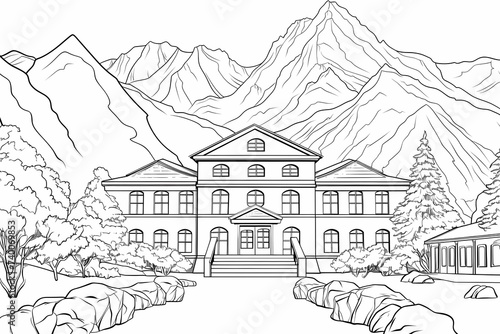 printable picture, coloring book with cozy buildings