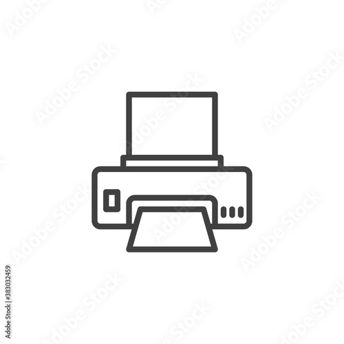 Printer with paper line icon. linear style sign for mobile concept and web design. Office printer outline vector icon. Symbol, logo illustration. Vector graphics