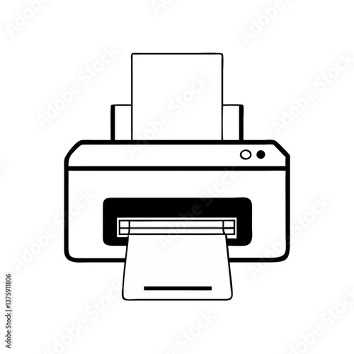 Printer with paper sheet in black and white icon