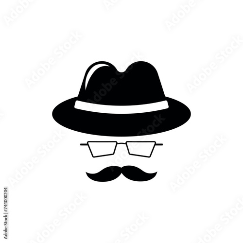 Private detective mask silhouette. Hat with mustache and glasses of inspector character solving a crime and conducting surveillance with vector investigation