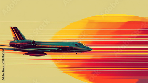 Private jet flying at sunset dramatic sky colorful speed lines red air fast travel flight luxury