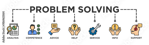 Problem solving banner web icon vector illustration concept with icon of analysis, competence, advice, help, service, info, and support