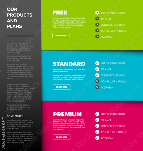 Product / service price comparison table