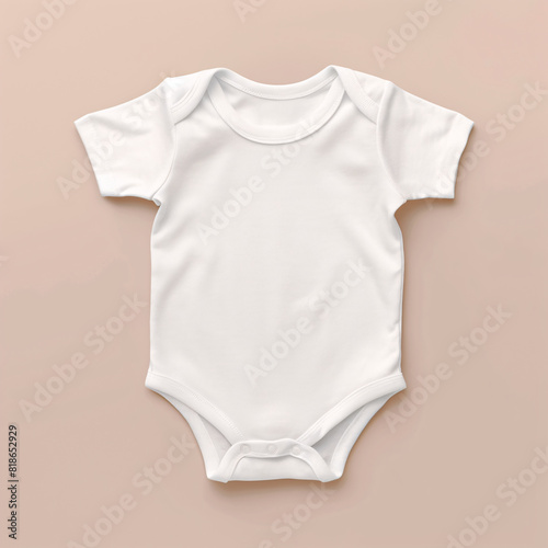 Product photo, White blank fabric baby romper mockup, empty solid color background background