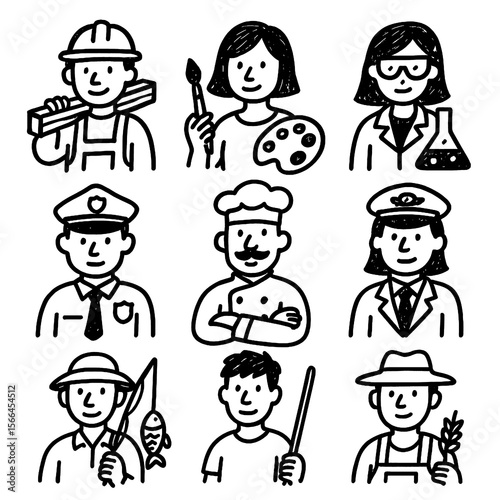 Profession Icons in Hand-Drawn Marker Sketch – Transparent PNG Illustration