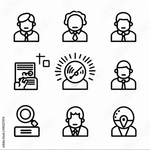 Professional And Minimalist Icons, Mentoring and Training, Line art, flat, 2d, black and white, white background stylize 50