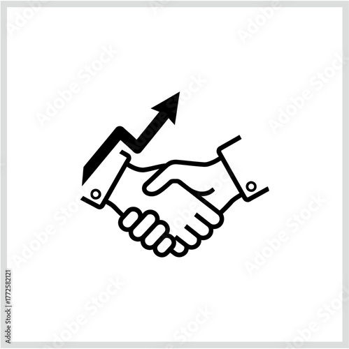 Professional business handshake icon representing successful partnership, corporate agreement, and economic growth through collaborative deal-making and upward market trend achievement