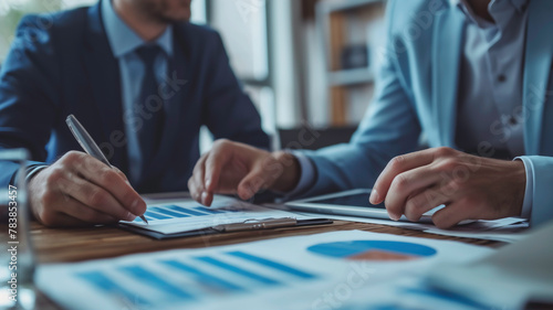 Professional business team working and meeting for brainstorming and analysis data figures to plan business strategies with documents on desk.