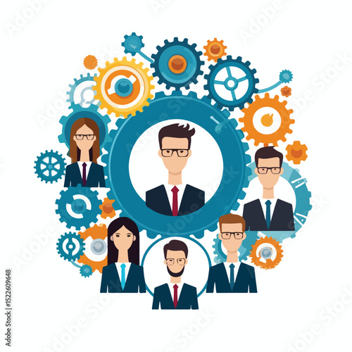 Professional Businessman Avatar with Gears Symbolizing Teamwork and Support