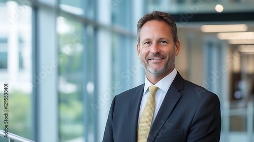 Professional Businessman Standing in Modern Office Environment with Natural Light : Generative AI