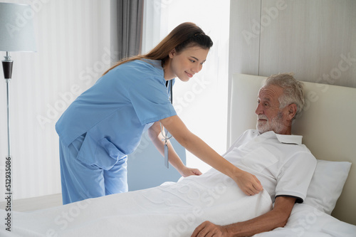 Professional caregiver taking care of elderly woman at home