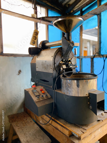 Professional coffee roaster machine in action, perfect for cafe branding and specialty coffee businesses
