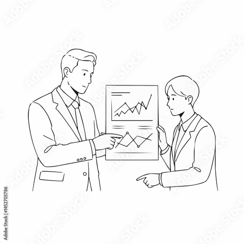 Professional discussing chart with colleague in an office setting