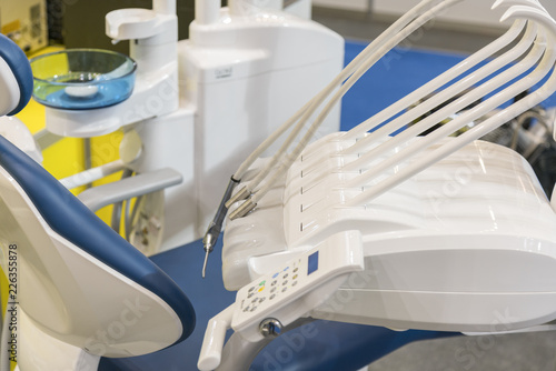 Professional equipment used in a dentist clinic. Closeup of a modern dentist tools, burnishers.