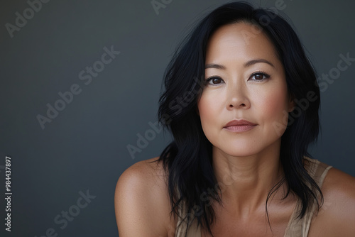 Professional Headshot of a Confident and Successful Asian Businesswoman in Elegant Attire with Neutral Background, Perfect for Corporate Profile, Business Use, Marketing, and Branding Purposes