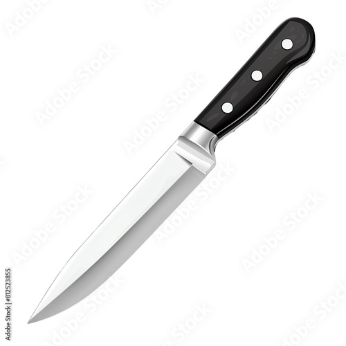 Professional kitchen knife with black and white handle isolated on a transparent background