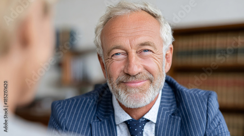 Professional latin american lawyer consults client in office setting