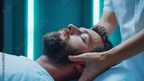 Professional Physiotherapist Performing Shoulder Therapy on Relaxed Patient in Modern Clinic Setting