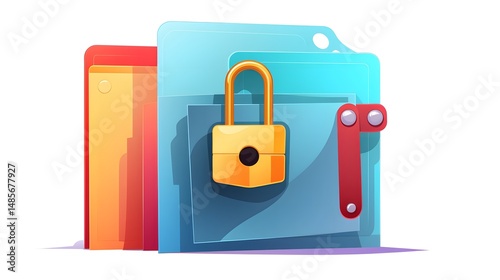 Professional Security Concept: Colorful File Folder with Padlock and Document