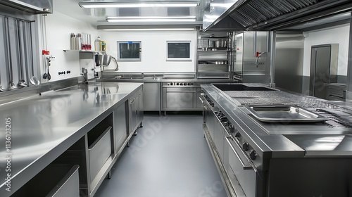 Professional Stainless Steel Commercial Kitchen with Industrial Equipment : Generative AI