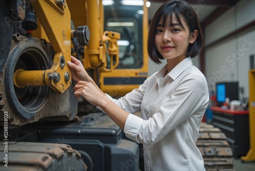 Professional Woman Operating Heavy Machinery in a Modern Industrial Workshop