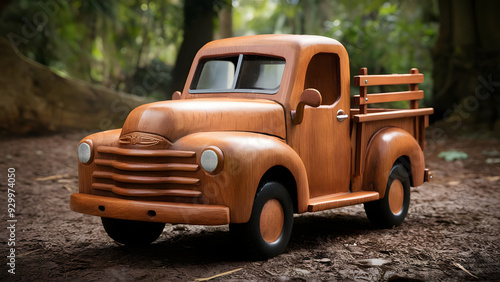 Professionally crafted 3D wooden model of Pick-up truck, with white background.