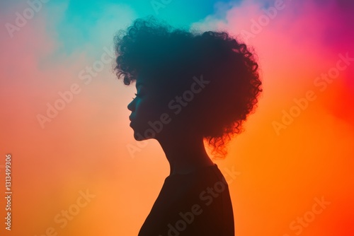 Profile of a Woman with Curly Hair Against Vibrant Colored Background