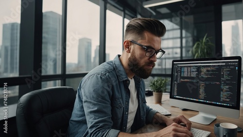 Programmer, web developer, designer working at office comparing mobile and desktop website versions