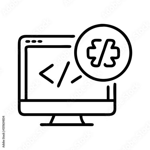 programming icon, programming line art - simple line art of programming, perfect for programming logos and icons