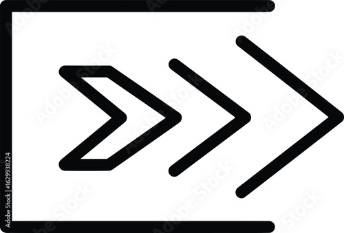 Progressive Arrow Indicator Icon: A minimalist black arrow symbol, depicting progression, movement, and direction within a defined frame, ideal for conveying digital or strategic forward momentum.