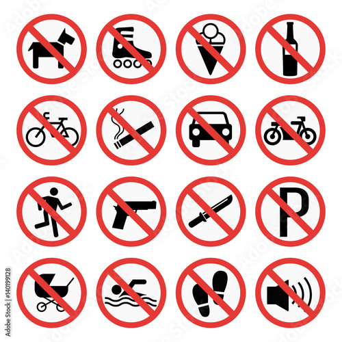 Prohibition signs set safety information vector illustration.