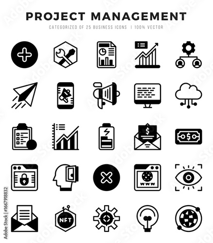 Project Management Lineal Filled icons. Vector Lineal Filled illustration.