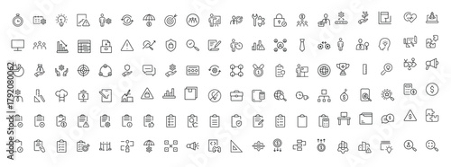 Project Management web icons in line style. Outline icon collection related to Schedule, human resource, management, development, planning.