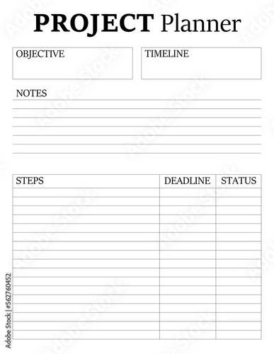 Project Planner Template. A concise design for a business notepad page. Business organizer. Project schedule. Letter format. Vector illustration