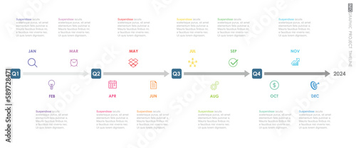 project timeline Infographic template for business. 12 Months modern Timeline diagram calendar with presentation vector infographic.