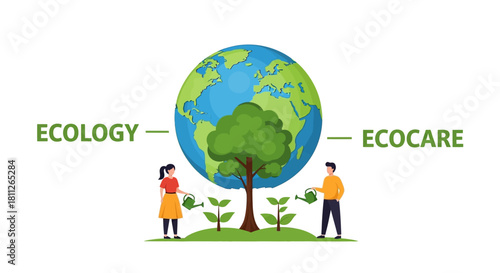 Protecting Our Planet A Vision of Ecology and Eco-Care with a Growing Tree and Watering Hands