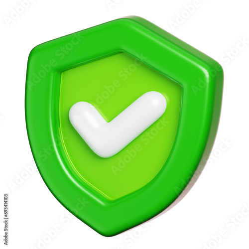 Protection shield with check mark isolated. Computer network security icon. 3D illustration