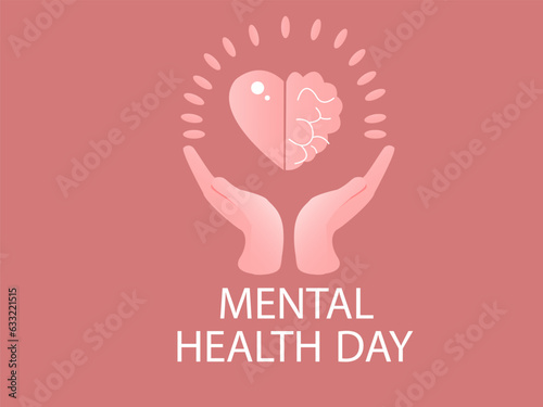 Psychology, emotion and psychotherapy concept. Vector flat illustration. Mental health treatment metaphor. Human hand hold human brain. Logotype template. Design for banner, web, logo.