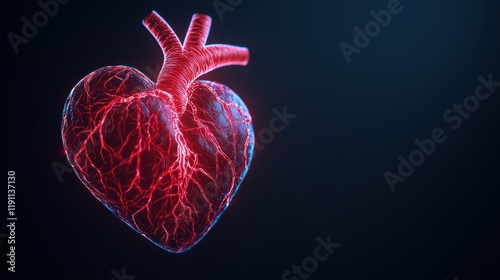 Pulsating heart with visible veins and arteries on dark background
