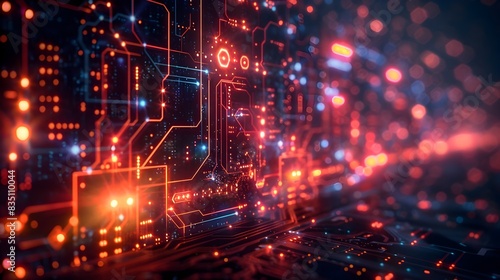 Pulsing Futuristic Technology Backdrop of Luminous Holographic Interfaces and Glowing Digital Circuitry