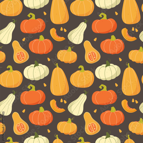 Pumpkin background. Autumn vegetables seamless pattern