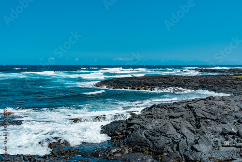 Punalu'u Black Sand Beach , Big Island, Hawaii. Pahoehoe Lava. volcanic rock.