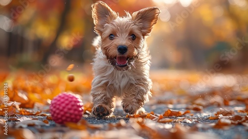 Puppy playing with a ball in the park