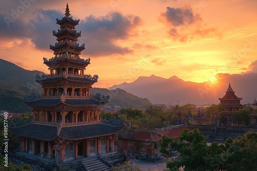 Pura Besakih temple on the slopes of Mount Agung largest and holiest temple at sunset