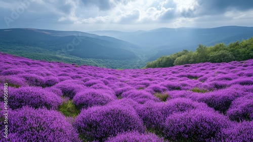 Purple Heather Moorland Landscape: Breathtaking View of Rolling Hills and Vibrant Blooms
