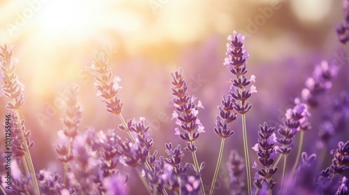 Purple lavender blooms in sunlight.