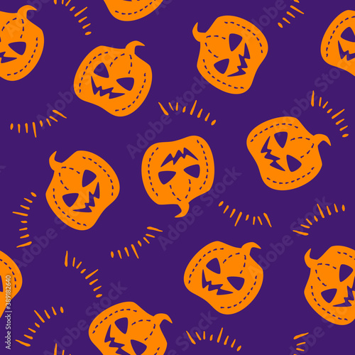 Purple orange seamless halloween pattern with pumpkin