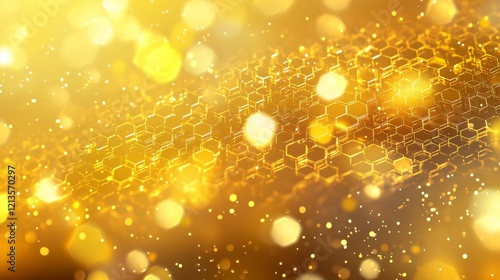 Purple pastel medical and tech background with hexagon pattern and bright sparkles. Realistic vector abstract bg with honeycomb geometric cell texture for medicine and science technology design.