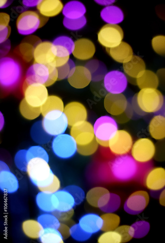 Purple, pink and yellow circle bokeh on dark background