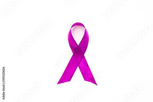 Purple ribbon awareness isolated on white. Alzheimer's or epilepsy awareness. Top view